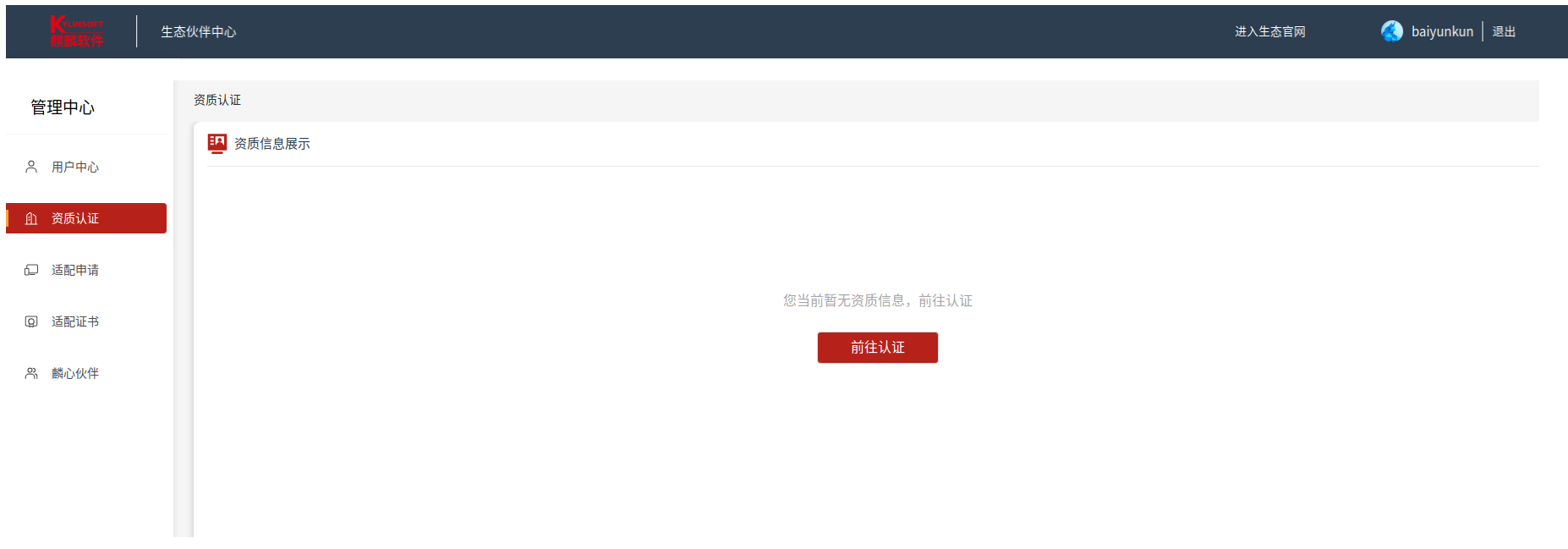 1. 【管理中心】-【資質認證】,點擊“前往認證”按鈕: