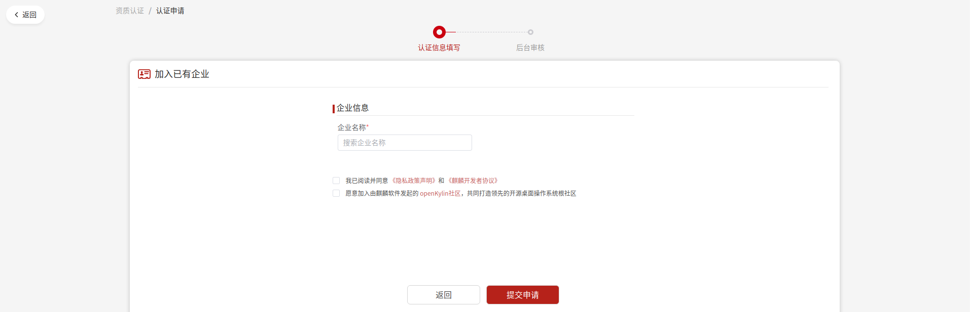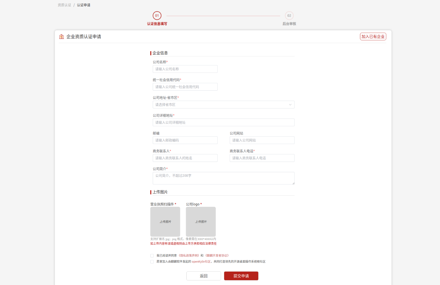 注:如果您的企業信息需要變更,請聯系您的麒麟生態對接人。