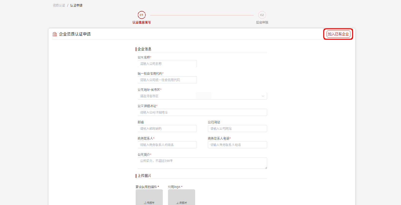 如果您的企業尚未進行資質認證,請先提交企業資質認證申請,完成企業認證流程后,您將自動成為該企業的默認管理員,資質審核通過后,即可提交