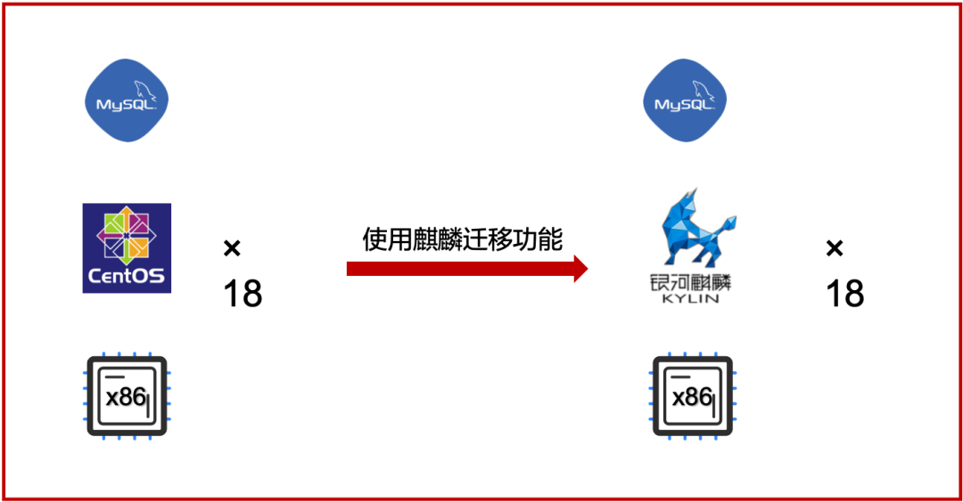在業務系統不變的場景下,麒麟軟件提供借助遷移工具達成操作系統兼容過渡的遷移方案,實現原有硬件利舊,完成操作系統平滑遷移。