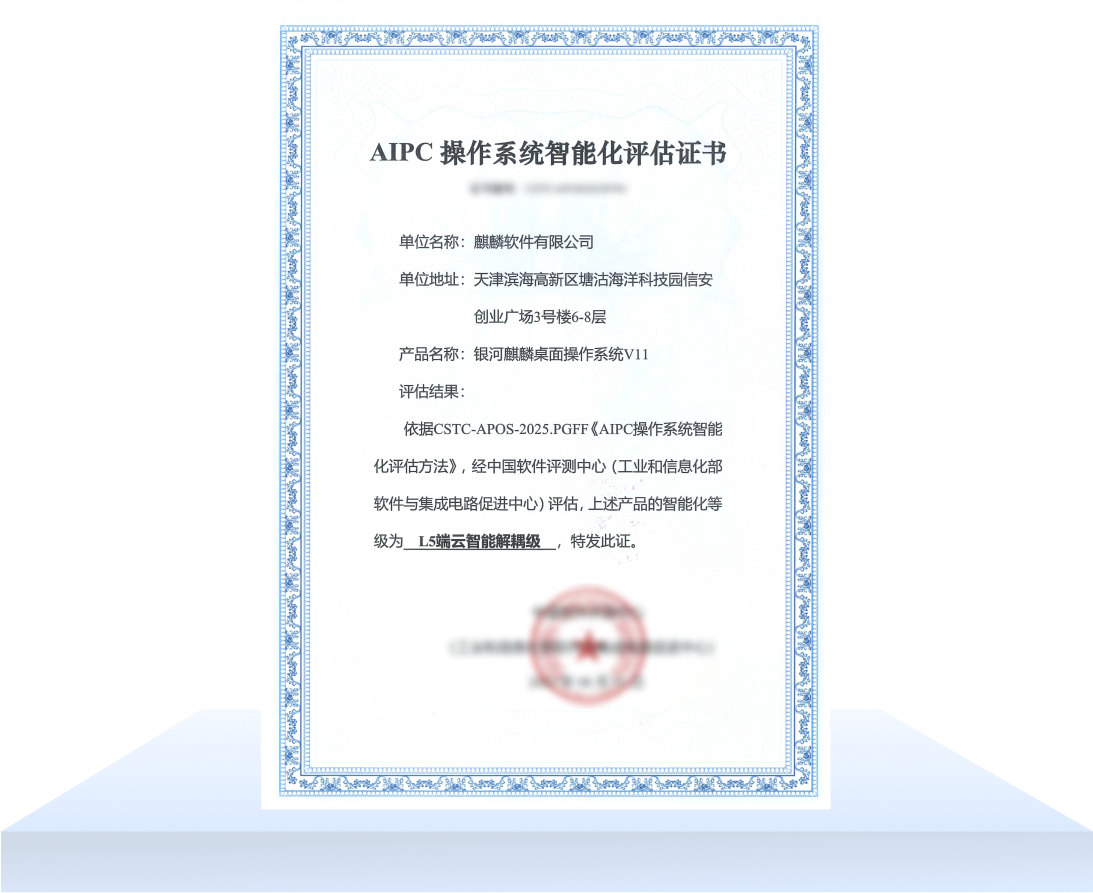 銀河麒麟桌面操作系統V11被賽迪評為首個AIPC OS產品
