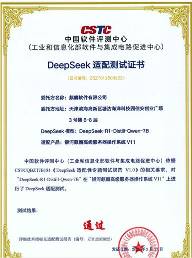DeepSeek適配測試證書