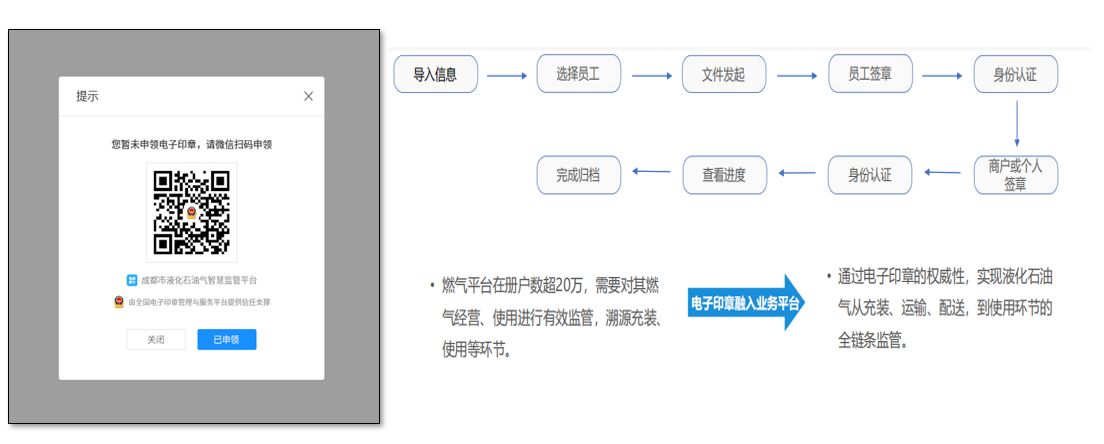 建設內容:采用銀河麒麟操作系統的成都液化石油氣智慧監管平臺服務端的集成電子印章申領、簽章、核驗能力,為平臺商戶和個人用氣提供電子簽章服務。