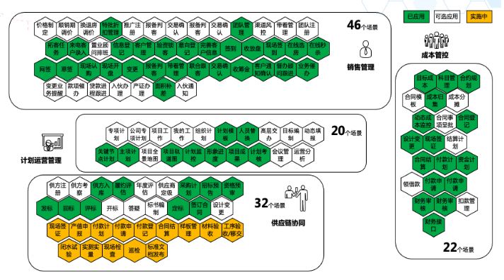 解決方案基于自主創新的國產化路線,全面覆蓋不動產企業運營中的銷售管理、成本管控、計劃運營管理和供應鏈協同等場景:
