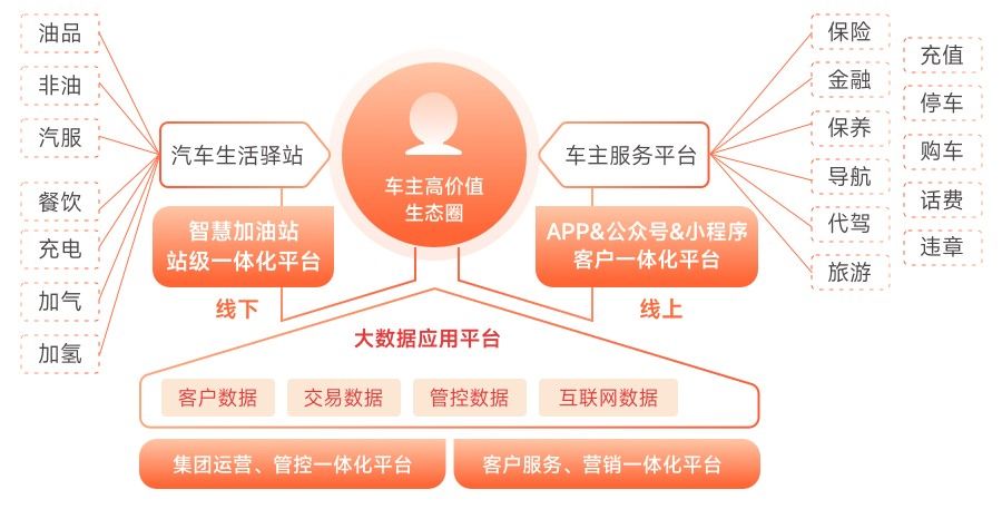 隨著互聯網、云計算、大數據、人工智能的興起,借助新技術賦能,加油站向生態化、會員化、在線化、智能化轉變,聯合解決方案貫通加油站訂單、支付、發票、客戶等全方位業務流程,實現加油站進、銷、存、量、價、客、營、績的全面業務支撐;以客戶為中心,依托互聯網平臺,通過“主業融合、精準營銷、生態打造”多輪驅動,實現從加油站的智慧經營到以車主服務為核心的生態圈擴展。