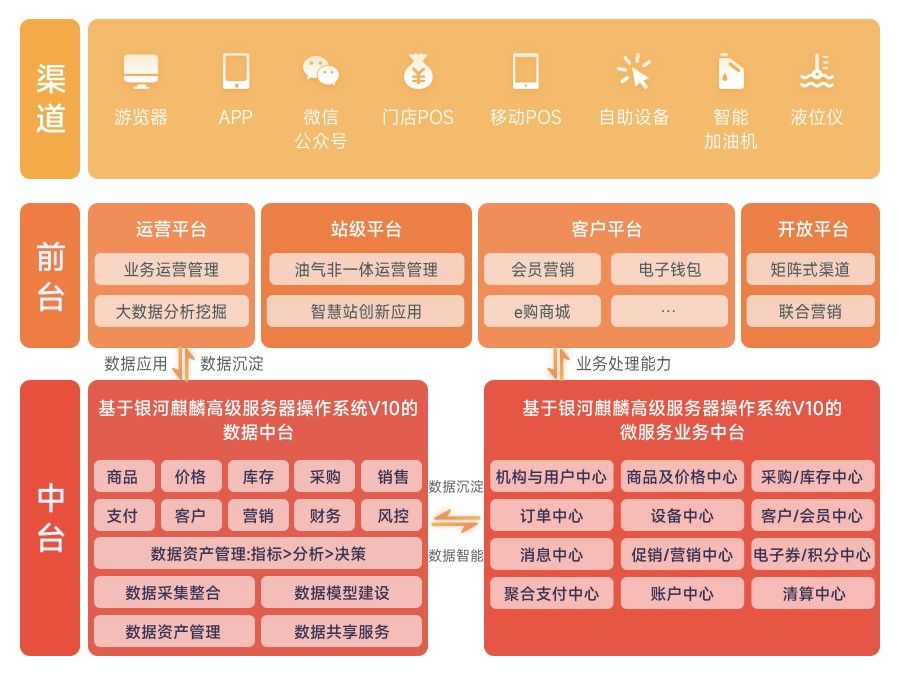 智慧加油站站級應用聯合解決方案是以客戶為中心,以數據為支撐,結合互聯網思維,打造的線上線下一體、油氣非融合互促、全場景消費體驗提升、全渠道客戶精準營銷的新一代解決方案,該方案完全兼容銀河麒麟高級服務器操作系統V10,結合尚博信智慧加油站管理系統和數字化中臺系列產品,可打造數字化、智能化、高效便捷、安全穩定的智慧樣板站,利用業務中臺和數據中臺,能夠提供持續演進的企業級業務能力,構建基于大共享的業務服務能力和基于數據的創新能力,滿足多元化的業務場景需求。