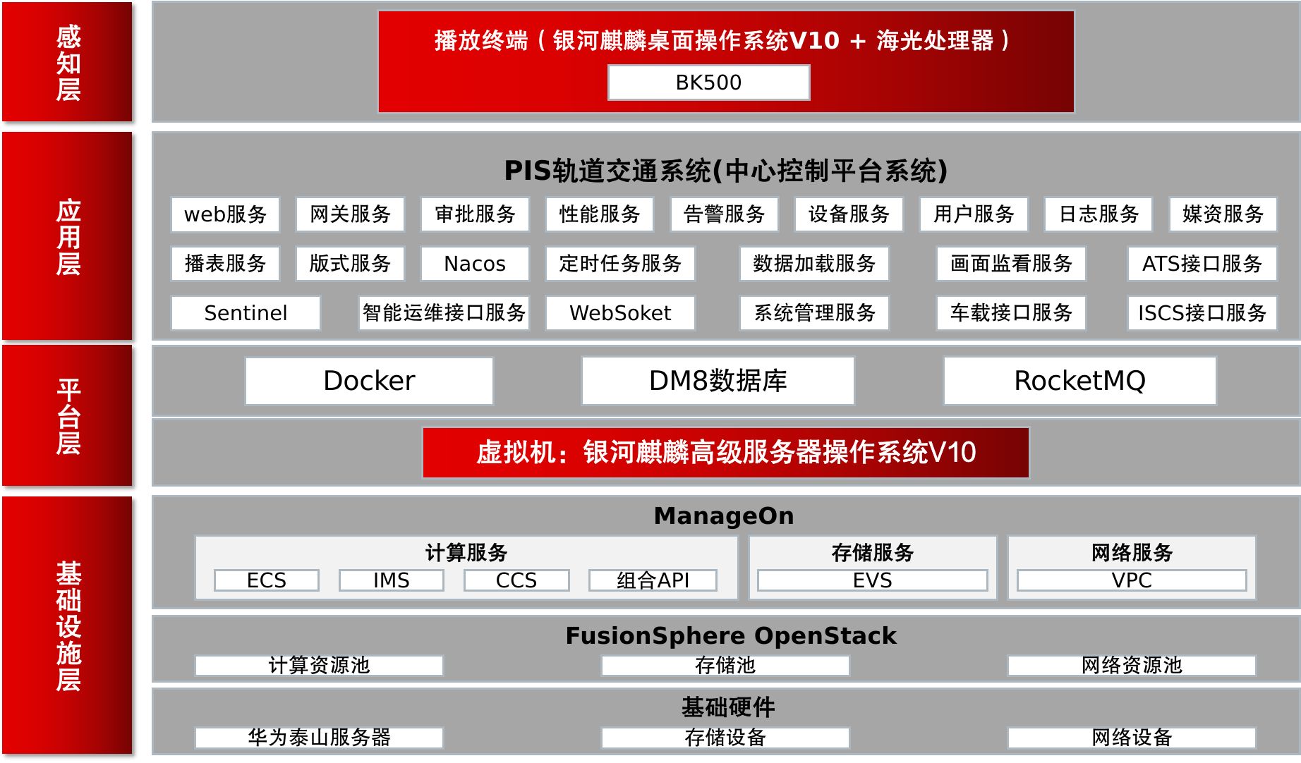 為了充分吸收、借鑒國內外新一代信息技術,進一步規范城市軌道交通信息系統,彌補信息化規范缺失,創新信息化體系建設,強化信息系統安全。工業和信息化部曾經委托中國城市軌道協會研究編制《新一代智慧城軌體系的信息技術系統的IT構架及信息安全規范》,該規范由協會專家和學術委組織實施。該規范已引導使用云化架構,結合當下國產化趨勢,麒麟軟件攜手宇翊技術共同構建新一代城軌乘客信息系統解決方案。