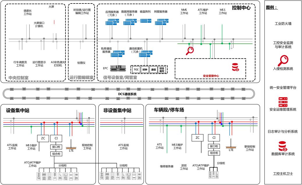 在控制中心部署國產化統一安全管理平臺、國產化安全運維管理系統、國產化日志審計與分析系統、國產化數據庫審計系統,建成信號系統線路級安全管理中心,實現安全運維、日志采集和審計、統一集中管控等。